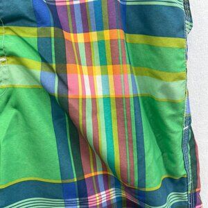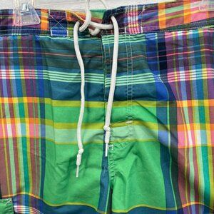 Dive into summer in these Swim Trunks / shorts by CHAPS. Traveler Mid Length Plaid Cotton Blend Men's Size Large.