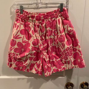 4/$20 Uniqlo Marimekko Pink Floral High Waisted Linen Blend Shorts, Size Small