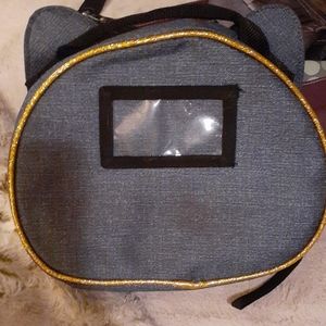 Girls arctic zone kitty lunch box in a denim like color with gold trim and white detailing in like new condition