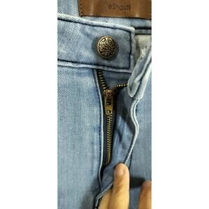 They feature a button-zipper closure , front scoop pockets, and two back patch pockets with a small eShakti leather tag.