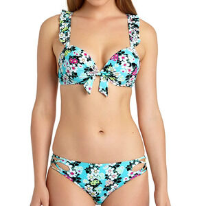 4/2$25 California Waves Womens Floral Strappy Swim Bottom Separates Small NWT