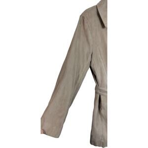 London Fog Limited Edition Tan Trench Coat Faux Suede Fully Lined Belted Women's Size Large.