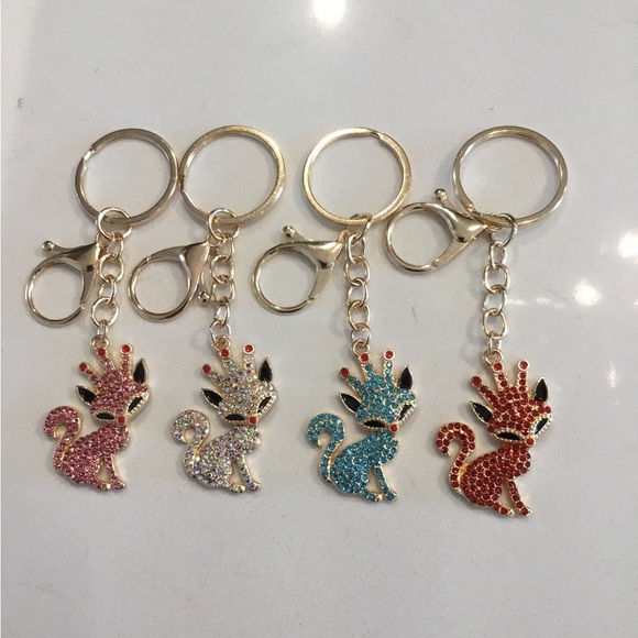 4/$24 Foxy Lady” Adorable Fox Bag Charms Key Chains in Pink, White, Blue, Red