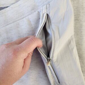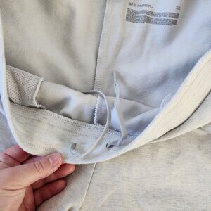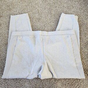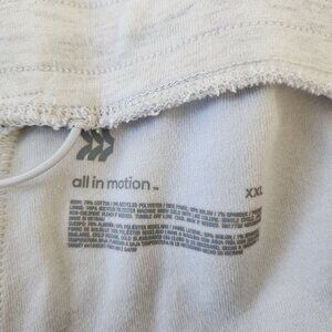 These jogger sweat pants are by All In Motion. They are a light gray color with a faint space dye pattern. They are pull on with a drawstring waist. They have zippered front pockets. They are soft and comfortable to wear with stretch. They are in excellent pre-owned condition with no holes, rips or stains. Bundle with other items in my closet to get the most out of shipping!