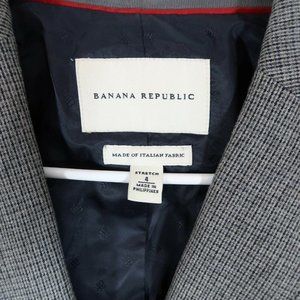 4/$25 BANANA REPUBLIC Size 4 Gray Micro Check Stretch Wool Blend 2 Button Blazer