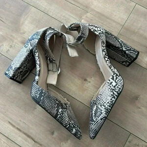 4/$25 Charlotte Russe Snake Python Print Block Heel Pointy Pumps Sz 10