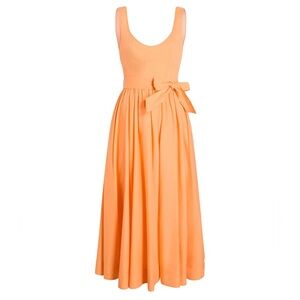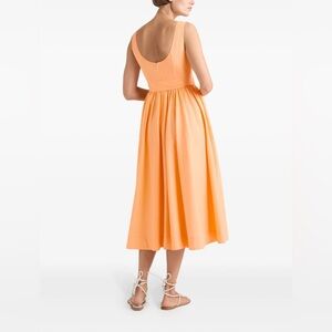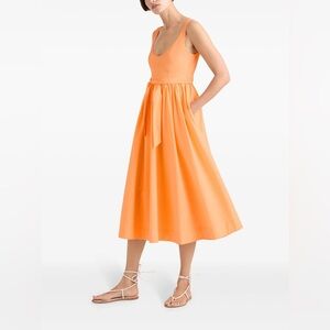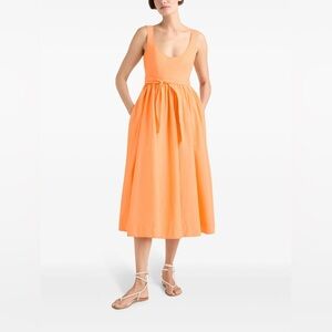 $425! Cinq a Sept Kilah Midi Dress Poplin Corset Bow Belt Pocket Flare Orange 12