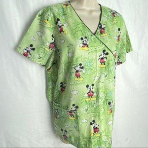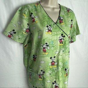 4/$25 Disney Mickey Mouse Scrub Top Cityscape Green Women's Small
