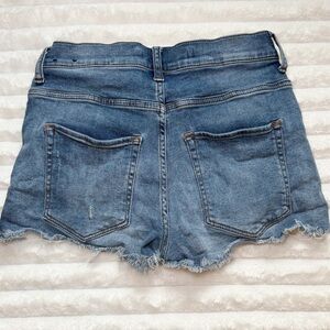 Ultimate stretch high rise shorty Jean shorts with raw hem. These have been cut from jeans!