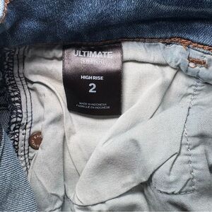 4/25$ Express Ultimate Stretch High Rise Jean Shorts Distressed Raw Hem Size 2