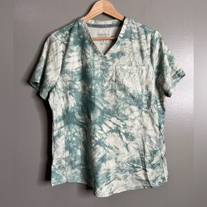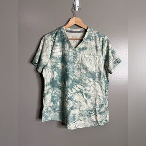 Fabletics sage green tie dye scrub top size small V neckline pocket medical