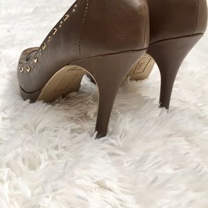 Cute faux leather brown heels with gold studs. Gently used and in great condition. Size 7.5, super comfy and sexy heels.