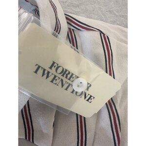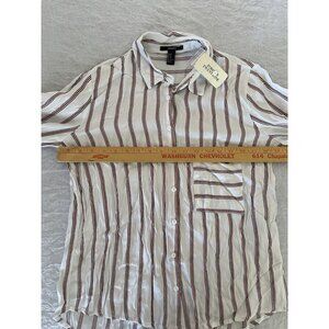 🌵4/$25 Forever 21 Sz Medium M Women's White Striped Button Shirt Summer Preppy