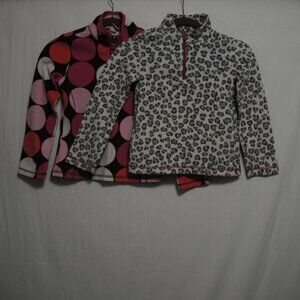 4/$25 Girl Bundle 2 Fleece 1/4 Zip Jackets Gray Leopard Large Colorful Dots Sz M