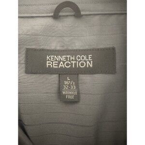 This Kenneth Cole Reaction Men's Long Sleeve Gray Button Down Shirt in size XL is a stylish and versatile choice for business or formal occasions. Made of 100% cotton with a solid gray color, this shirt features a classic collared neckline, long sleeves, and a button closure. The shirt is machine washable and has a regular fit, making it a convenient and high-quality option for the modern man's wardrobe.