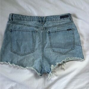 4/$25 Like new mid rise Volcom Blue Jean Shorts with Frayed Hem sz 30