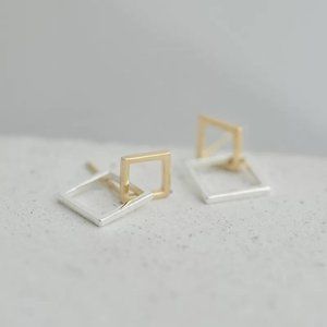 4/$25 Linked Square Earrings Vermeil Sterling Silver