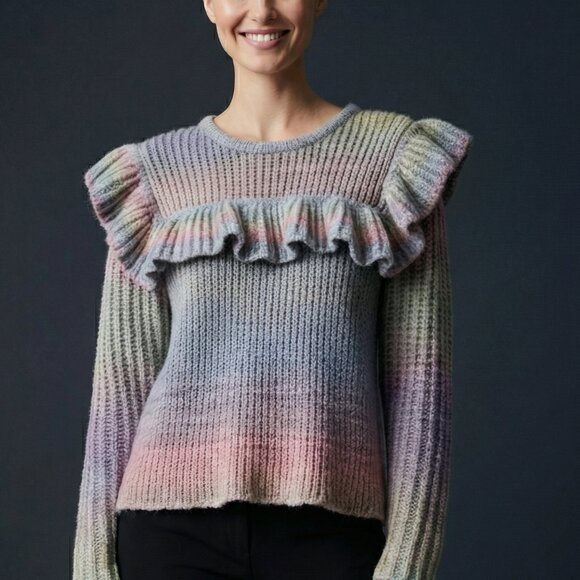 $425 LoveShackFancy Yumi Ruffle Alpaca wool Sweater S