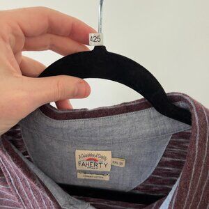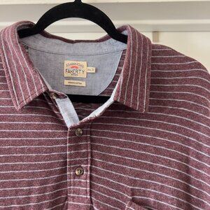 425 Men's Faherty Long Sleeve Striped Polo Size XXL Color Maroon Grey