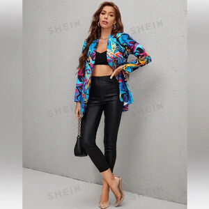 4/$25 New SHEIN Privé Graphic Print Single Button Blazer Sz M