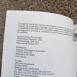 This is the Publication Manual of the American Psychological Association, 6th edition. It is in excellent pre-owned condition, there are a couple of pages that have been ear marked. Bundle with other items in my closet to get the most out of shipping!