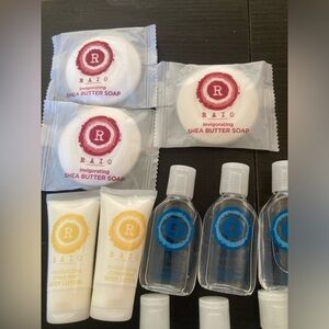 4/$25 RAIO Skincare and Haircare travel set. 3 soaps, 2 body lotion, 2 shampo0