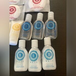 RAIO Skincare and Haircare travel set. 3 soaps, 2 body lotion, 2 shampoos & 3 conditioners
