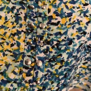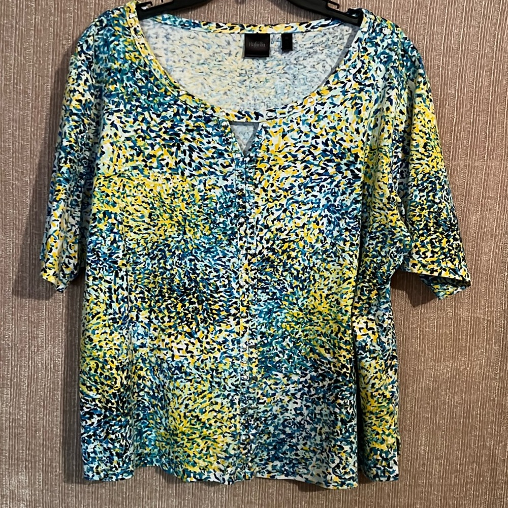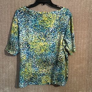 Rafaella colorful top with studded accents in good condition, size 2x, PTP laying flat is approximately 24.5 with some stretch and the length is 24. Any tops marked with a ❤️ are 4 for $25, add them to a bundle and I will reduce the price
