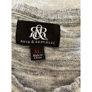🌵4/$25 Rock & Republic Women's Sweater Heather Gray Size XL V-Neck 100% Cotton