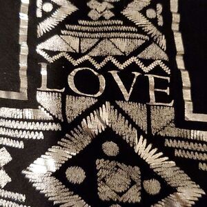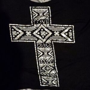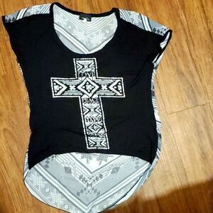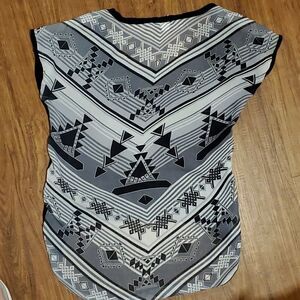 Rue 21 size M, 38 across chest high/low hem sheer back black white and silver