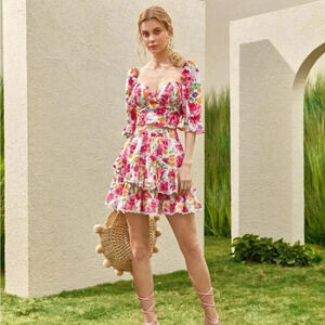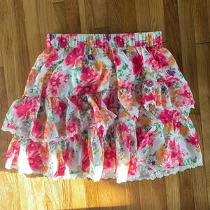 4/$25 SHEIN NWOT FLORAL MINI SKIRT Women’s Size XS Lace Trim Elastic Waistband