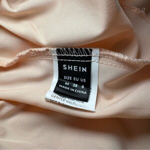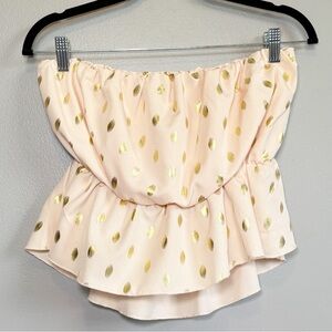 4/25$ SHEIN Pink and Gold Smocked Strapless Blouse With Open Tie Back Medium