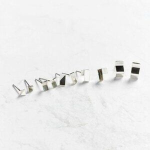 Give your look an intriguing appeal with this ever-so-cool set of geometric post earrings. Architectural, dimensional studs in a sleek metal that look so unique mixed + matched together.