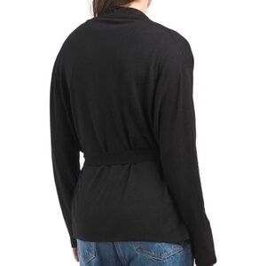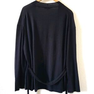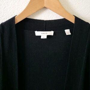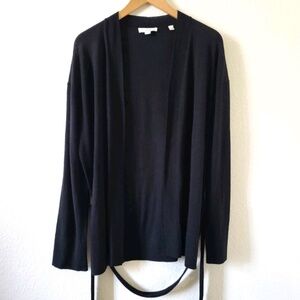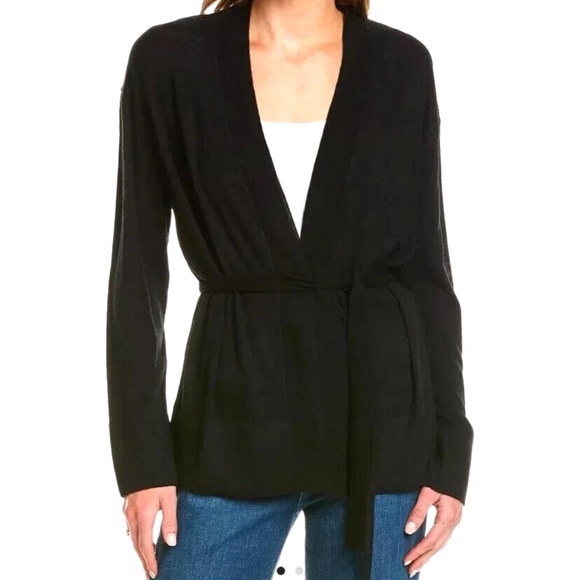 $425 Vince Wool Blend Belted Lightweight Cardigan in Black