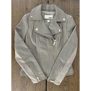 $425 Women’s Michael Kors Leather Moto Jacket Size X-Small Dark Beige/Grey