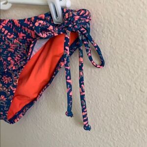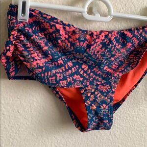 Adorable blue & pink bikini bottoms in excellent condition. Tie on one hip, longer covering on the other side. Size S.