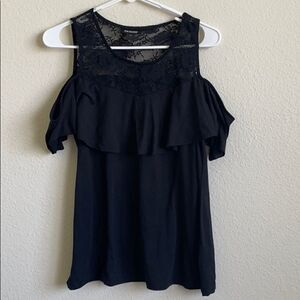 Cute, black, cold-shoulder top. Some pilling, otherwise great condition. Size L.