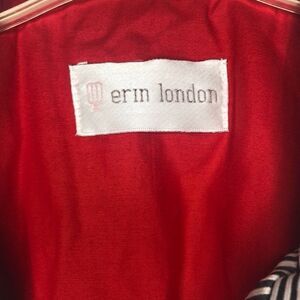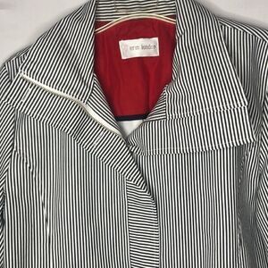 Erin London Navy and White Pinstriped Jacket. Zip and buttoned front. There is no size tag. See measurements.