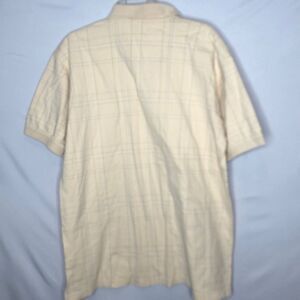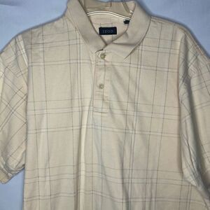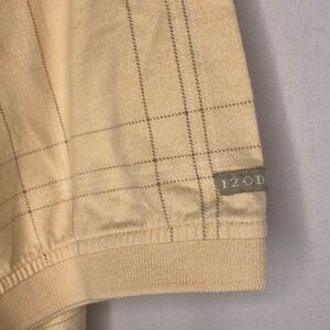 IZOD Golf Polo Shirt. Size Large. Short sleeve. Colors: yellow with grey and white stripes. Excellent condition.