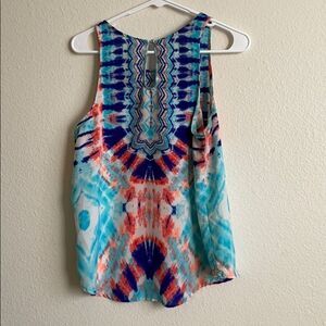 Cute, printed tank with lots of bright, fun colors. Button closure in the back. Size L. Excellent condition.