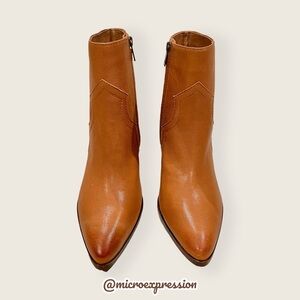 $428 Frye Flynn Short Cognac Brown Real Leather Zipper Block Heel Ankle Booties