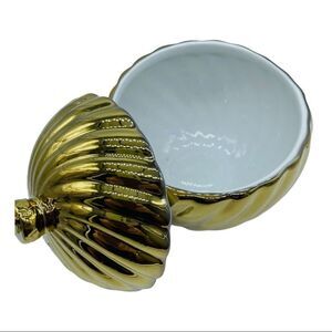 Choose either silver or gold ornament shaped ceramic covered bowl to decorate your home. Not just for Christmas, this bowl can be used year round or gift. Includes original box and packing.