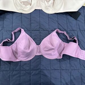 All NWOT. 4 of the 5 have never been worn. The blush colored one was worn twice. I lost some weight shortly after purchasing these so they no longer fit. They are great bras which is why I ordered in every color I could get. They are extremely comfortable fabric and give great lift — I’m 54 with breasts that are no longer dense, so lift is crucial.