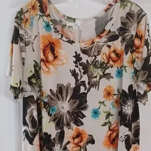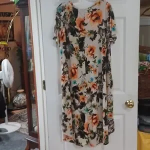 pit to pit 22 in. shoulder to back long length 44 in. NWOT high/low print dress. Looks great with boots. Smoke-free, pet free home. Fast shipping.