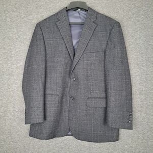 42R Jos A Bank Traveler Gray Plaid Windowpane Wool Sport Coat Blazer Jacket