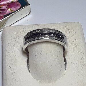 Silver. This Classy Gents Black & White Diamond Band Ring has a MSRP of $2439.00.
