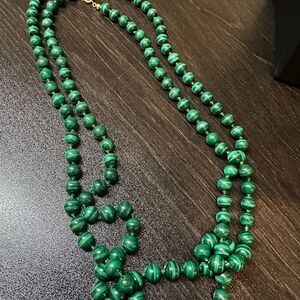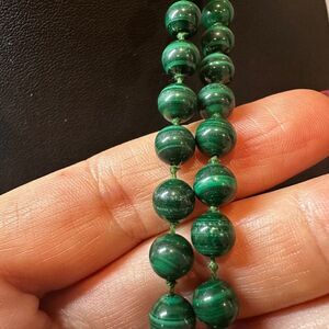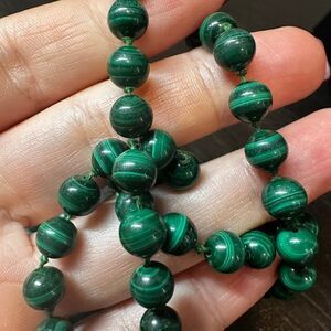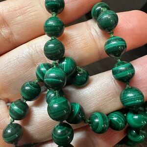 A wholeeeee lot of malachite! 42” of 6mm malachite beads. Each bead is separated by a knot. Clasp is gold tone.