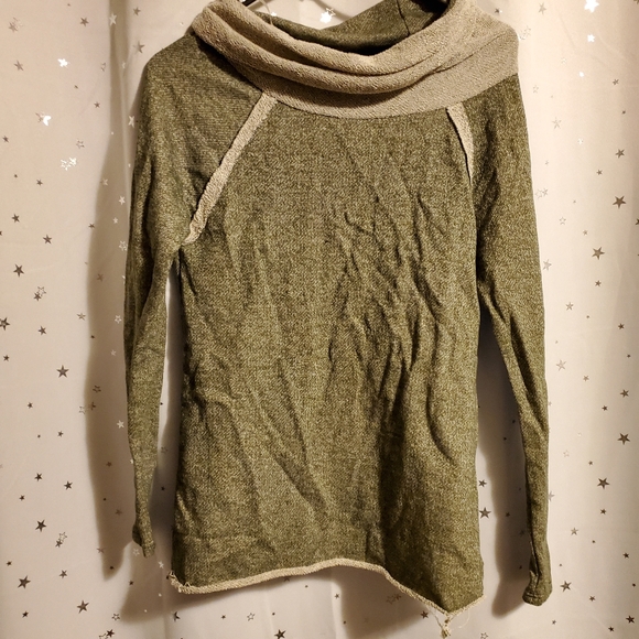 Nwot - Cowell neck green tan sweater, see the fry in the 2nd pic. I do believe this is ment to be a rag top.
