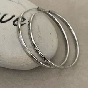 #43 NEW Large 925 Sterling Diamond Cut Hoop Earrings