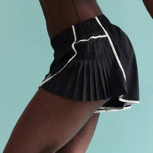 So comfy and active-ready, these billowy shorts feature a high-rise fit and smocked elastic waistband with pleated detailing at the sides. Relaxed fit, shorty-length, pull-on style, Lightweight and breathable fabrication, smocked elastic waistband, contrast seams, pleated side detail for added dimension, These laidback shorts can be pulled on pre- or post-workout.